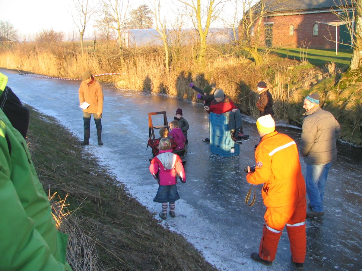 Op zaterdag 10 januari 2009 zijn er op de gracht bij de boerderij van Jaap en Tineke Bakker (hartstikke bedankt daarvoor), eindelijk, na 8 jaar weer eens wedstrijden gehouden. Het ging om priksleeen voor jeugd en volwassenen en schaatsen voor de jeugd. Er was in ruime mate publiek al was het meer dan berenkoud!