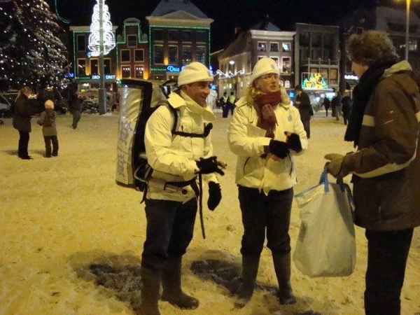 Misschien zijn deze 2 foto’s leuk voor de Oldenzijlster site. Ze zijn gemaakt op maandag avond 21 december. Bouke Danny en Amanda en Gerko verkochten warme chocolademelk om de melkveehouderij te promoten. En zo de Serious Reqest aktie te steunen. De aktie heet “melk das belangriek”. LTO Noord had deze aktie georganiseerd en ook de andere afdelingen van LTO deden deze dagen mee. De opbrengst was dan ook 40.000 euro na een week in weer en wind en 24 uren per dag er te zijn geweest.