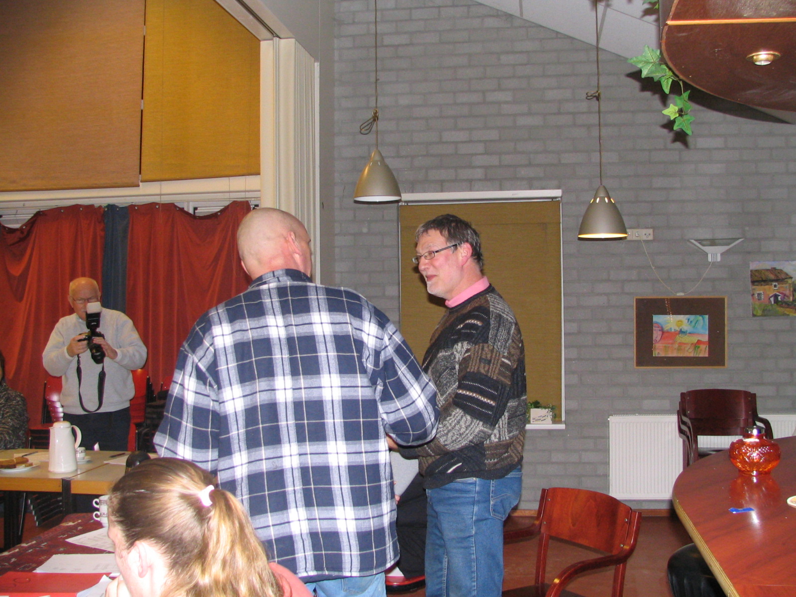 In de rondvraag viel op dat Leo de voetbalpoolprijsuitreiking uitvoerde, waarbij Leo derde, Dick tweede en jawel Eric eerste werd. Dit was een pleister op de wonde van Eric die even daarvoor van Aletta de joker had mogen ontvangen vanwege zijn thuiskomst met een verkeerde jas. Ik wil Aletta een compliment maken voor het prachtige verhaal, sprookje wat zij er van gemaakt had.010.JPG