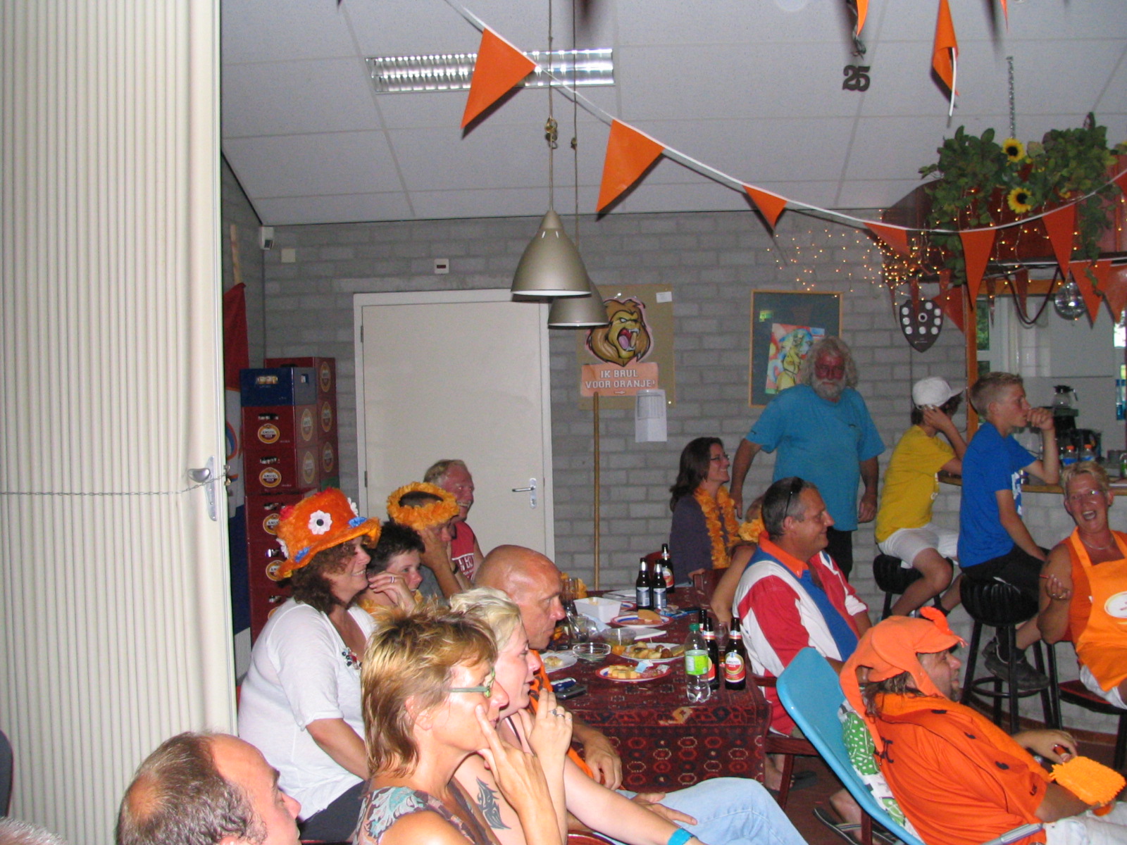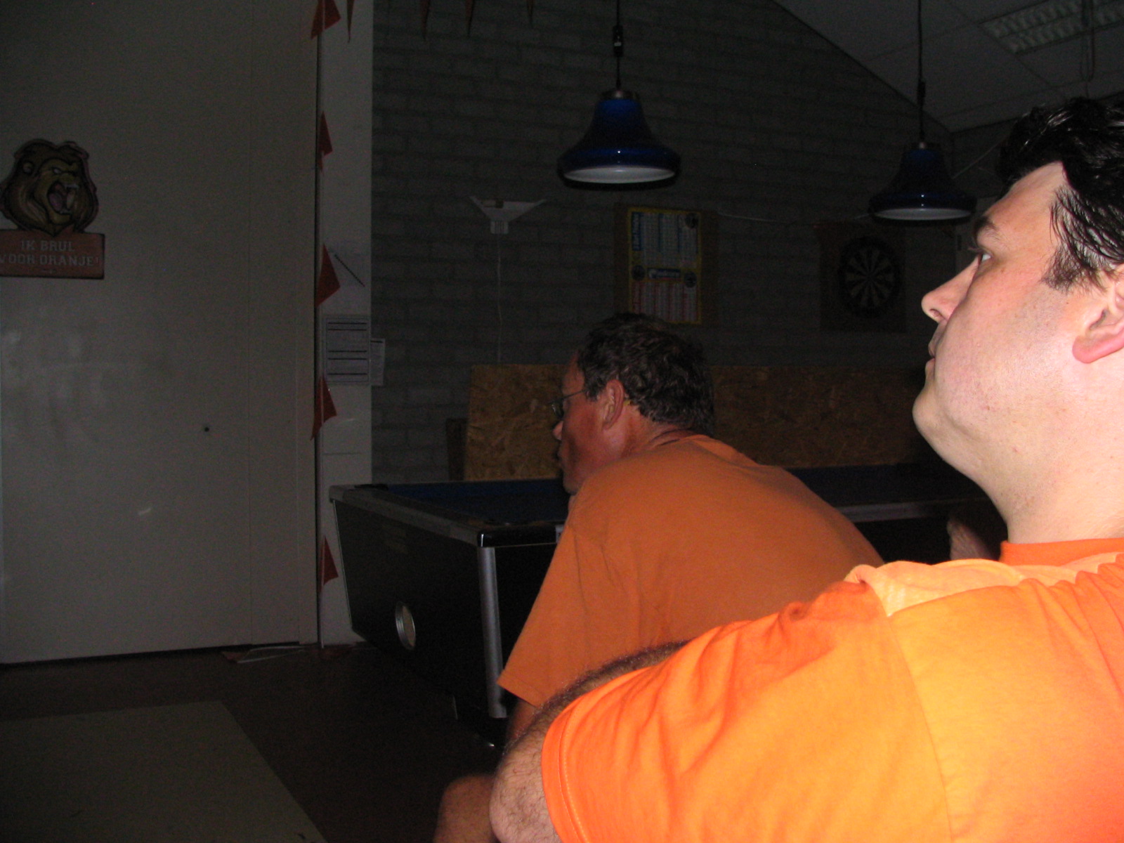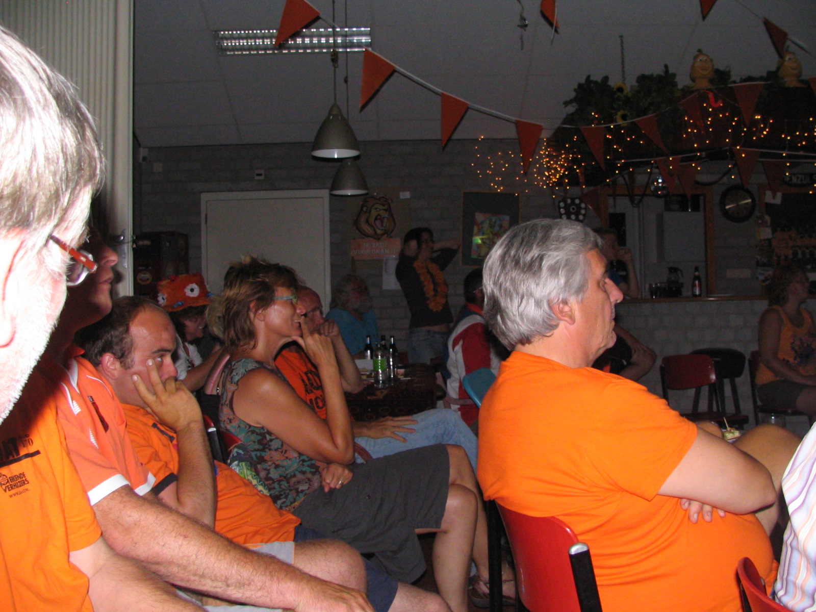 Ruim veertig mensen waren aanwezig, meest in oranje, in een gespannen sfeer, maar eerst nog vol vertrouwen.
