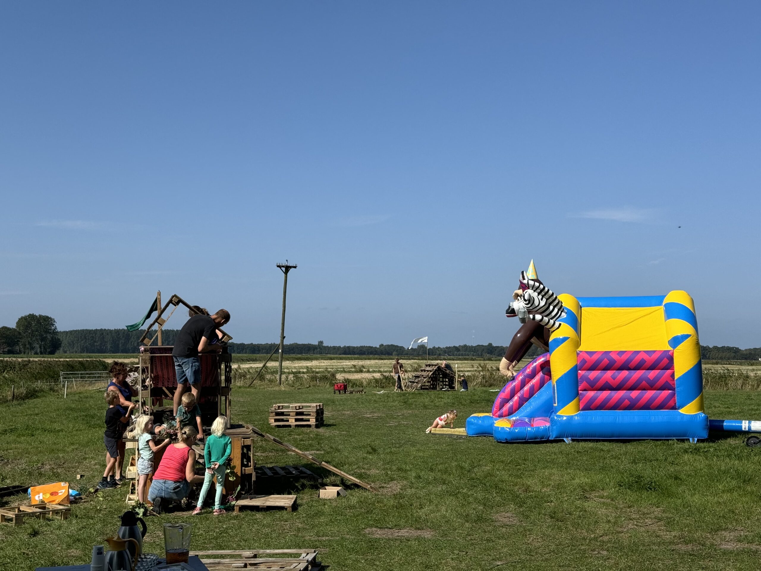 Op zaterdag 31 augustus hebben we een fantastische dag gehad: 15 kinderen (en hun ouders) hebben drie hutten gebouwd. Daar kregen ze prijzen voor: Louis deelde die uit voor de grootste, de mooiste en de vrolijkste hut.  Ook was er een springkussen, om alvast in de stemming te komen. Aan het eind van de middag was er patat met kroket of frikadel.